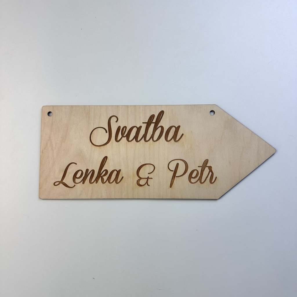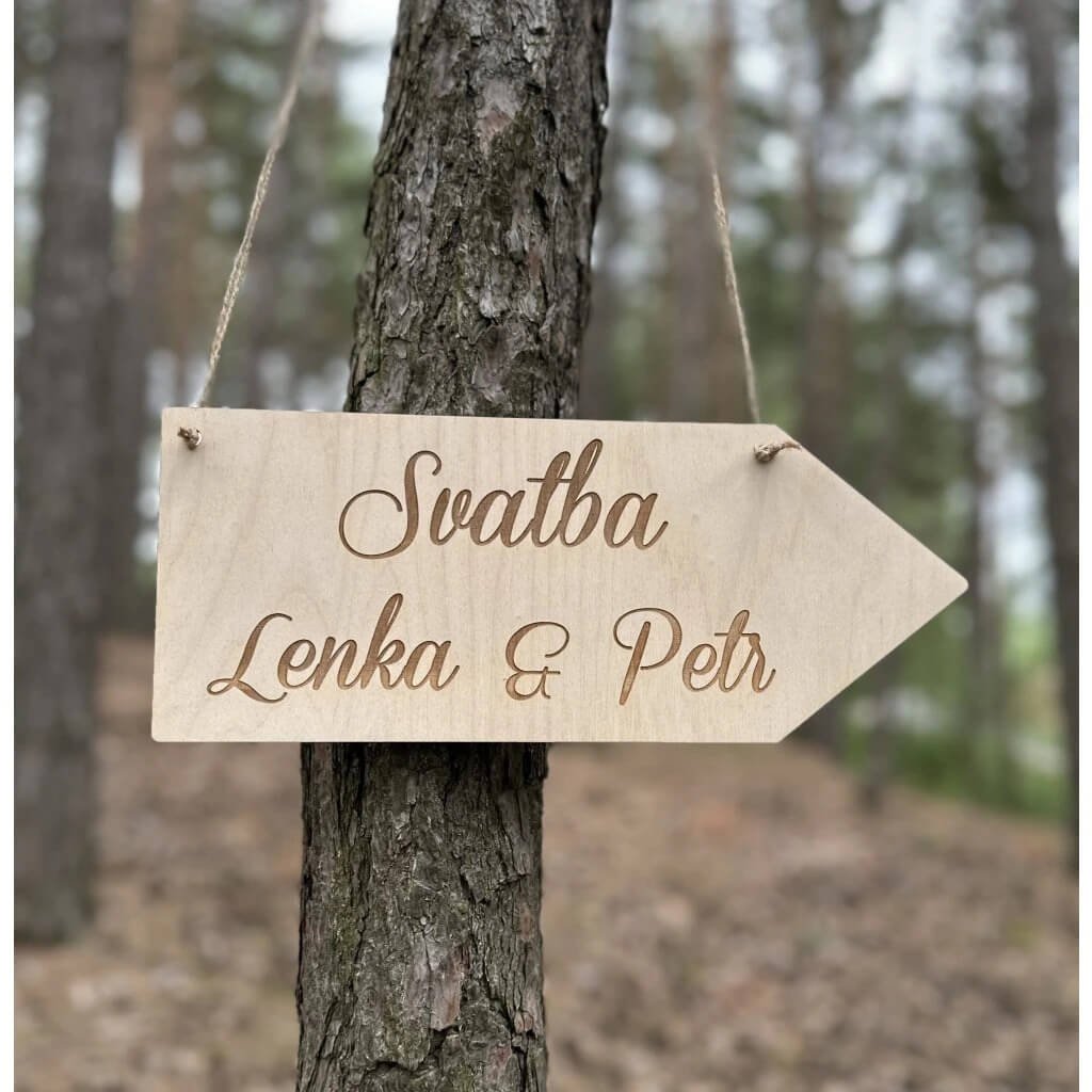 Dřevěný ukazatel "Svatba" je stylový a praktický doplněk, který hosty navede správným směrem. Přírodní design se hodí ke každé svatební výzdobě a dodá místu rustikální kouzlo. Do poznámky prosím napište JMÉNA. Provázek na zavěšení NENÍ součástí balení
